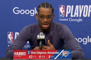 24直播网4月26日讯 NBA季后赛首轮G3,雷霆121-109力克太阳,大比分3-0领先,赛后亚历山大接受了媒体采访,以下为采访全文。
