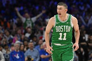 24直播网4月27日讯 NBA季后赛东部首轮G4,凯尔特人半场56-38领先76人。