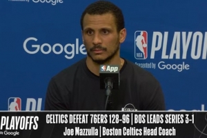 24直播网4月27日讯 NBA季后赛首轮G4,凯尔特人客场128-96大胜76人,总比分3-1拿到赛点。赛后乔·马祖拉接受了媒体采访,以下为采访全文。