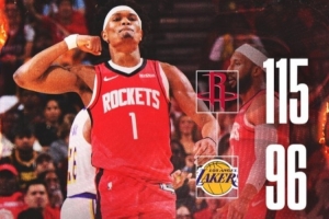 24直播网4月27日讯 NBA季后赛G4,火箭在主场以115-96击败湖人,将系列赛比分扳至1-3。