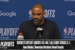 24直播网4月27日讯 火箭在主场以115-96击败湖人,将系列赛比分扳至1-3。赛后乌度卡接受了媒体采访,以下为采访全文。