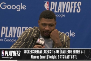 24直播网4月27日讯 在今天结束的一场季后赛中,湖人以96-115不敌火箭,大比分3-1领先。赛后,湖人球员马库斯·斯玛特出席了新闻发布会。以下是完整版采访内容。