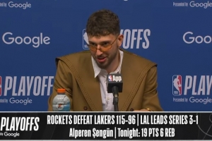 24直播网4月27日讯 火箭在主场以115-96击败湖人,将系列赛比分扳至1-3。赛后申京接受了媒体采访,以下为采访全文。