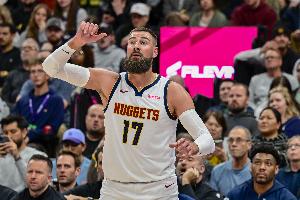 24直播网4月28日讯 NBA季后赛西部首轮G5,掘金半场60-51领先森林狼。