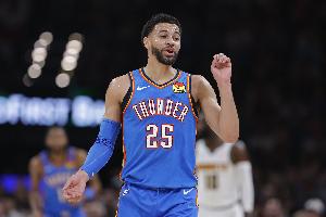 24直播网4月28日讯 NBA季后赛,雷霆131-122力克太阳,总比分4-0淘汰对手。