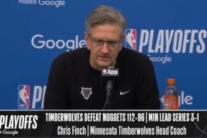 24直播网4月26日讯 NBA季后赛首轮G4,森林狼主场112-96击败掘金,大比分3-1夺得赛点。赛后克里斯·芬奇接受了媒体采访,以下为采访全文。