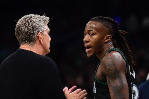 24直播网04月26日讯 NBA季后赛首轮G4,森林狼112-96击败掘金3-1夺得赛点,在华子迪文大伤离场后,新援道苏姆站了出来。