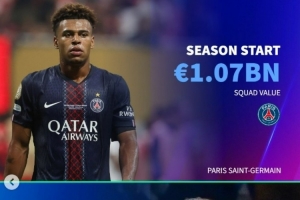 德转盘点本赛季身价上涨最高球队:巴黎、科莫、考文垂在列